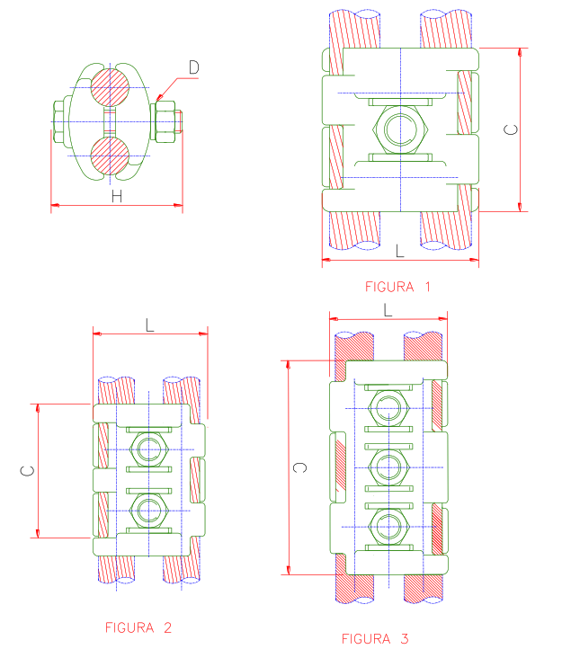 ELEF-H – CONECTOR ATERRAMENTO SPLIT BOLT SIMPLES DE BRONZE DE ALTA RESISTENCIA MECANICA